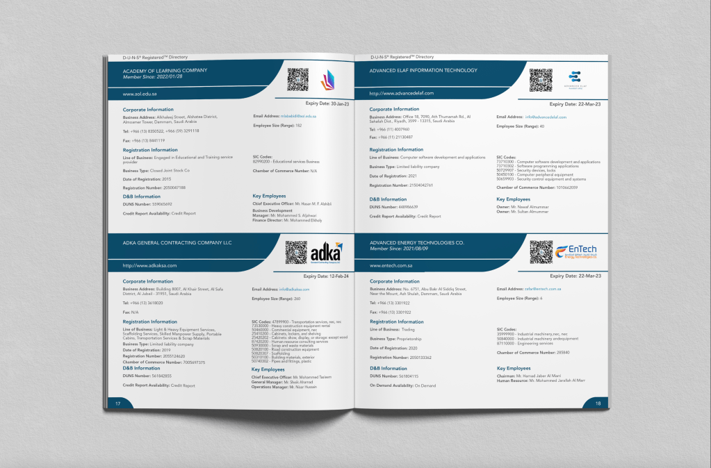 This directory was created for the KSA market. It contained details for around 200+ companies in KSA which had to be presented in a readable and concise manner.
