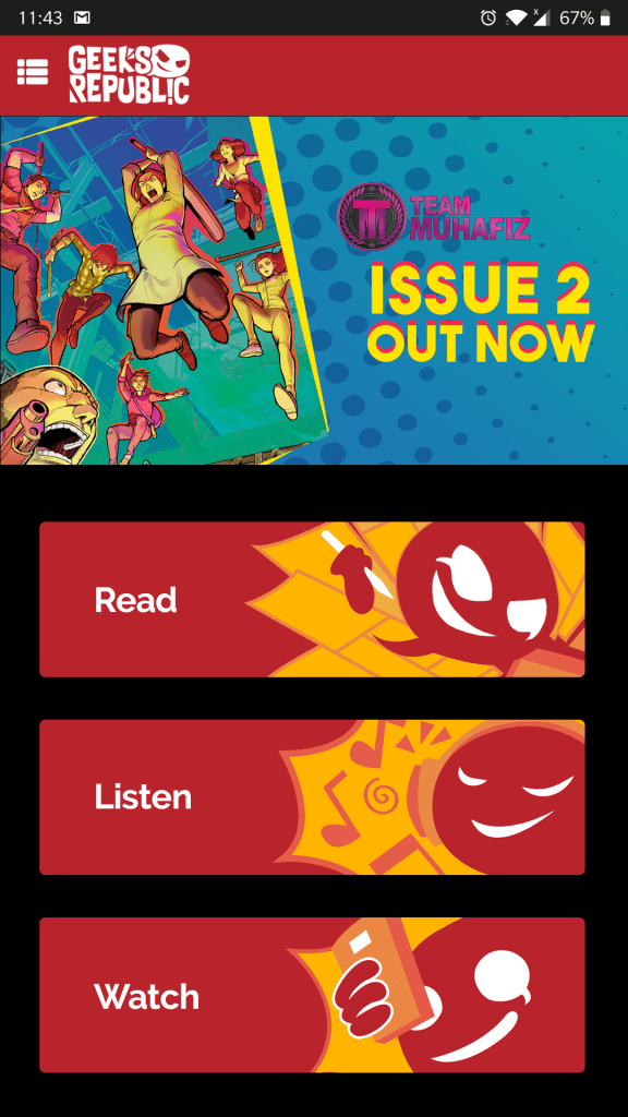 Geeks Republic is a creative platform for comic book fans, a gathering place for storytellers, to tell their stories how they want, when they want. For the ardent readers who appreciate diverse and original content from all over the world. This was a project by Azcorp Entertainment. My task was to design the brand identity along with the app and website.
